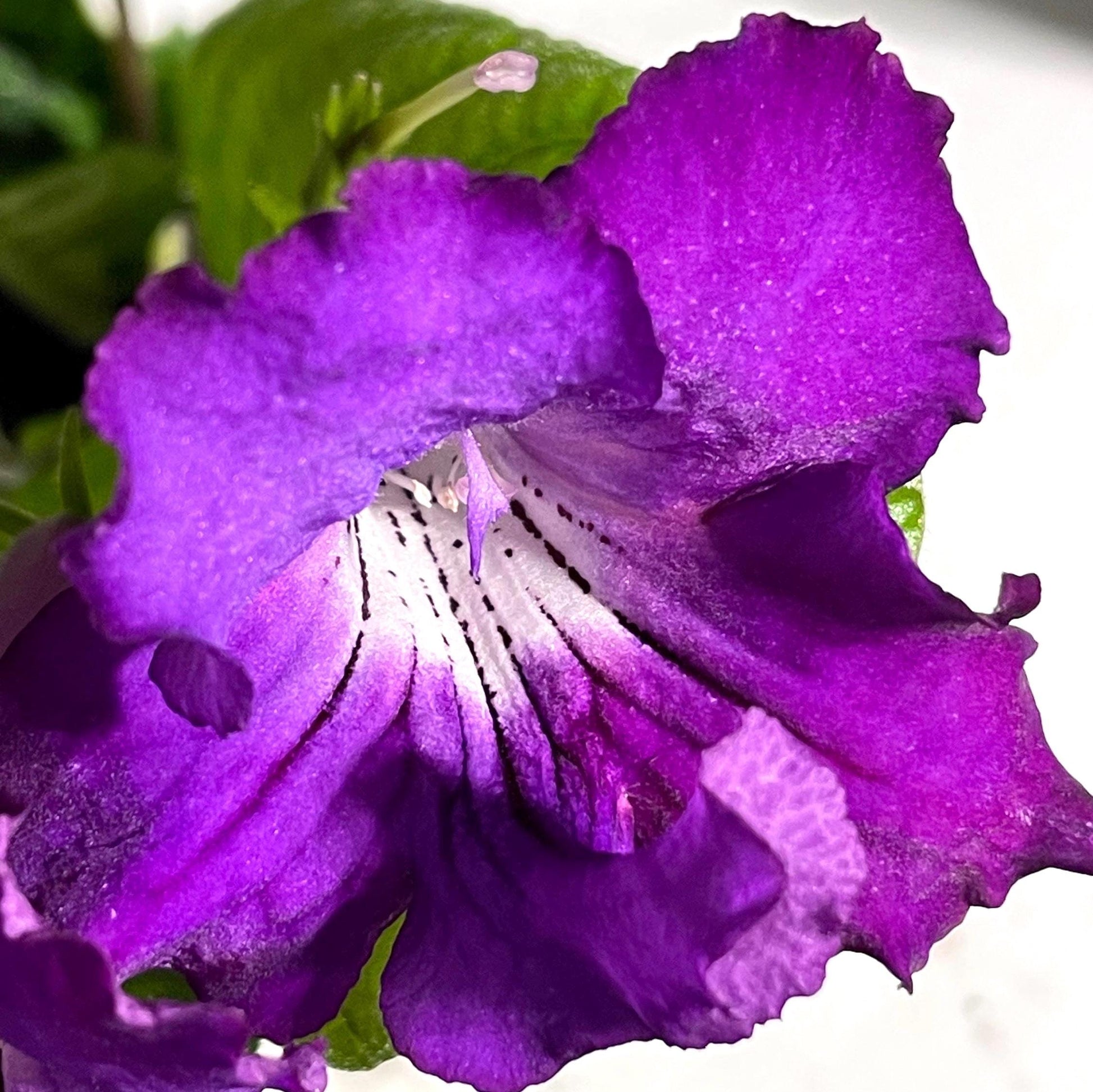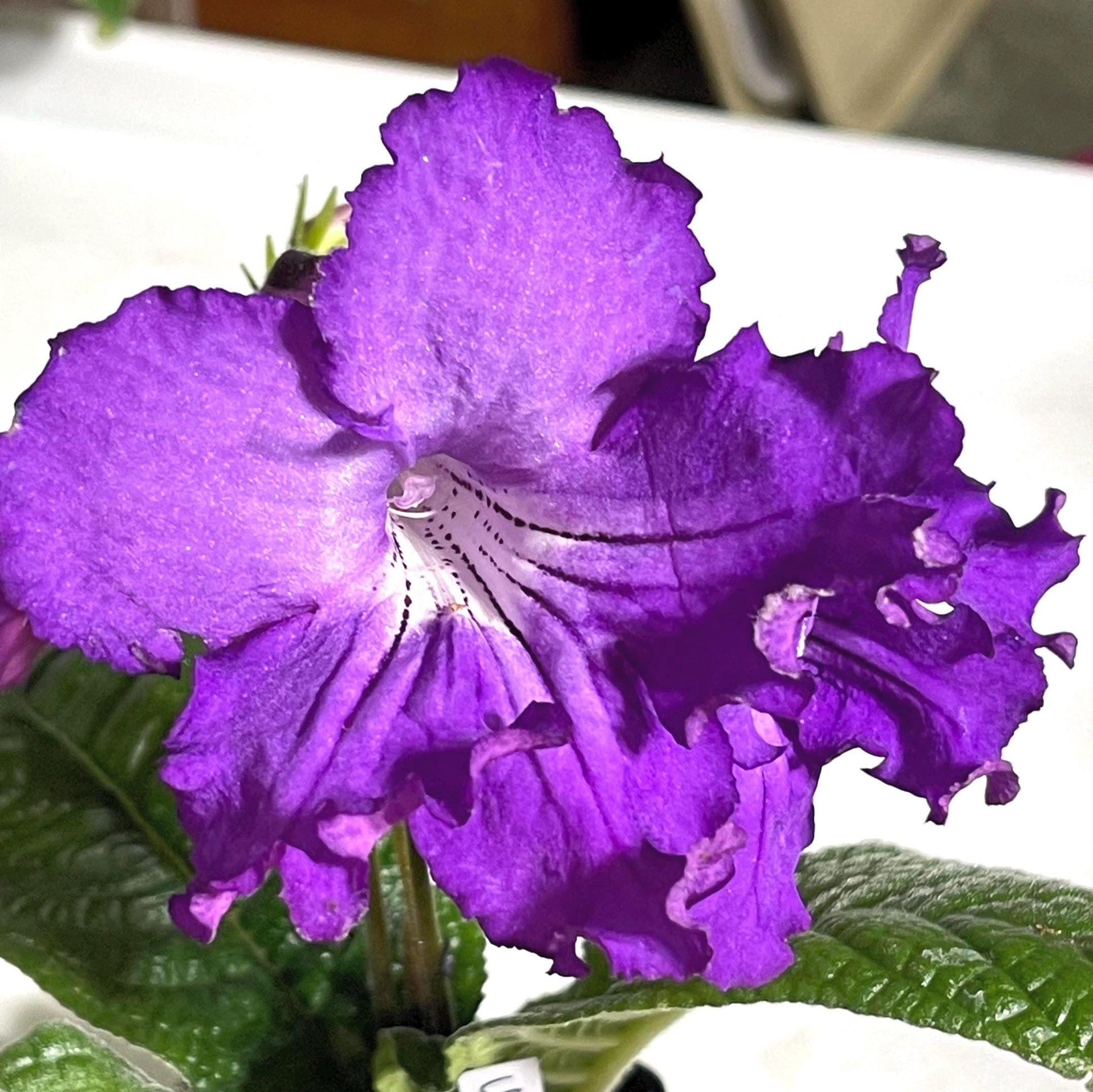 BB 1504 is a new introduction from Brandywine Botanica. Deep orchid colored lobes with white eye. Several dark lines radiate from the throat.