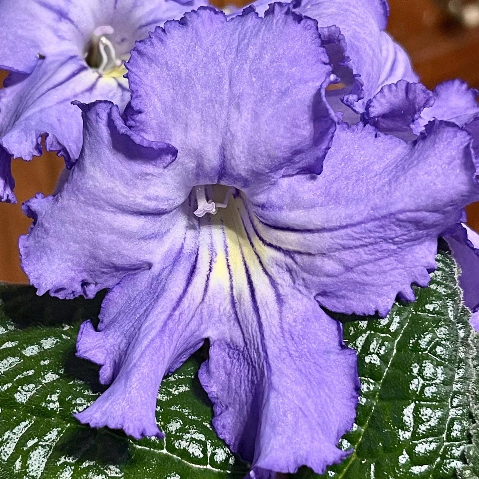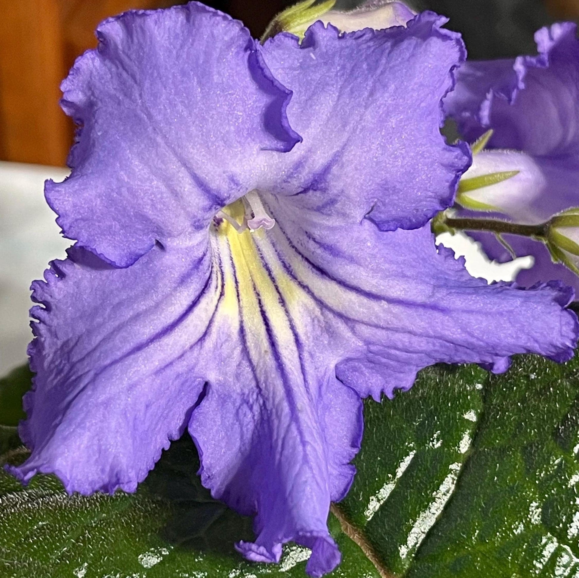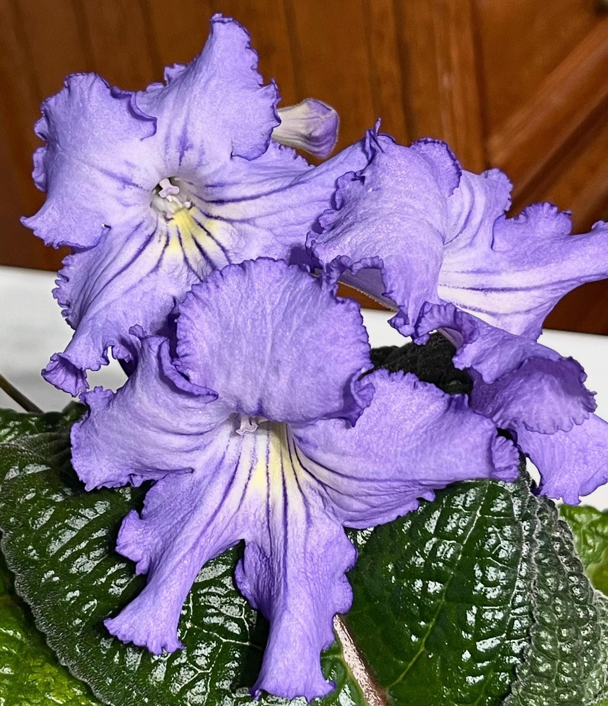 BB 1567 is a new introduction from Brandywine Botanica. A hybrid from DS Poppy. A lavender blue flower with a soft yellow eye. Lavender lines radiate from the center on the lower lobes. Flowers are large with lightly ruffled edges. Similar to BB 1212 but with a smaller growth habit.