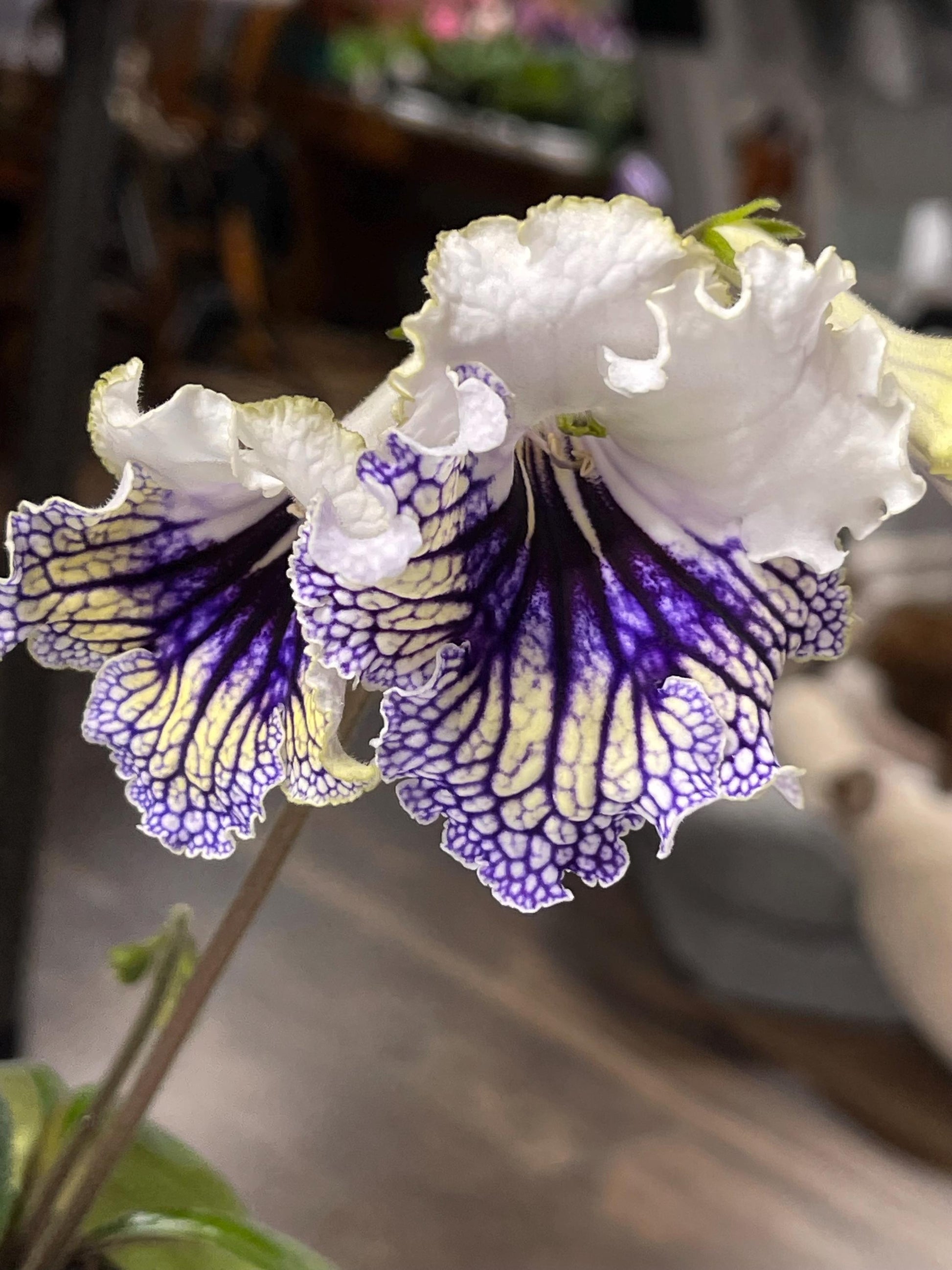 Streptocarpus are close relatives to the African Violet in the Gesneriad family. Plant size can vary with each variety, but generally can reach 12 inches high by 18 inches wide. Leaf size and length varies from plant to plant. Suitable for indoor pots and hanging baskets in an eastern exposure. They can bloom year round with strong growth under fluorescent lighting for 15 hours a day. Use a light, porous potting mix and allow plants to dry down between waterings. Wet soil will cause plants to rot. Feed regularly using a well balanced fertilizer with every watering. Ideal temperature is 65 to 75 degrees with a minimum of 50 degrees. They do not like it too hot.