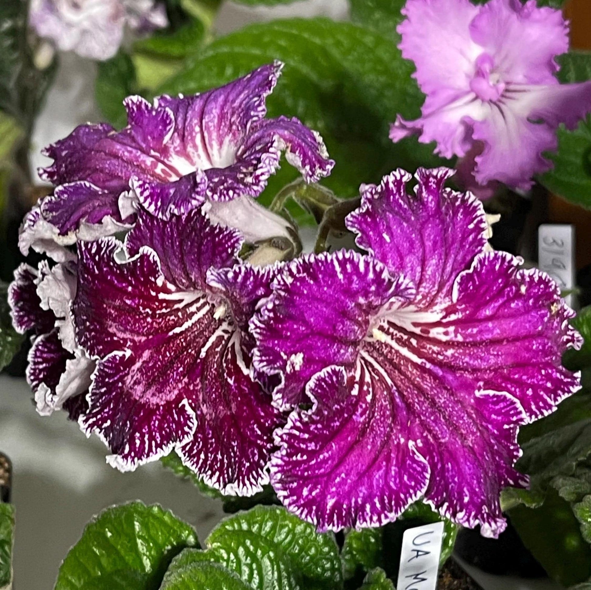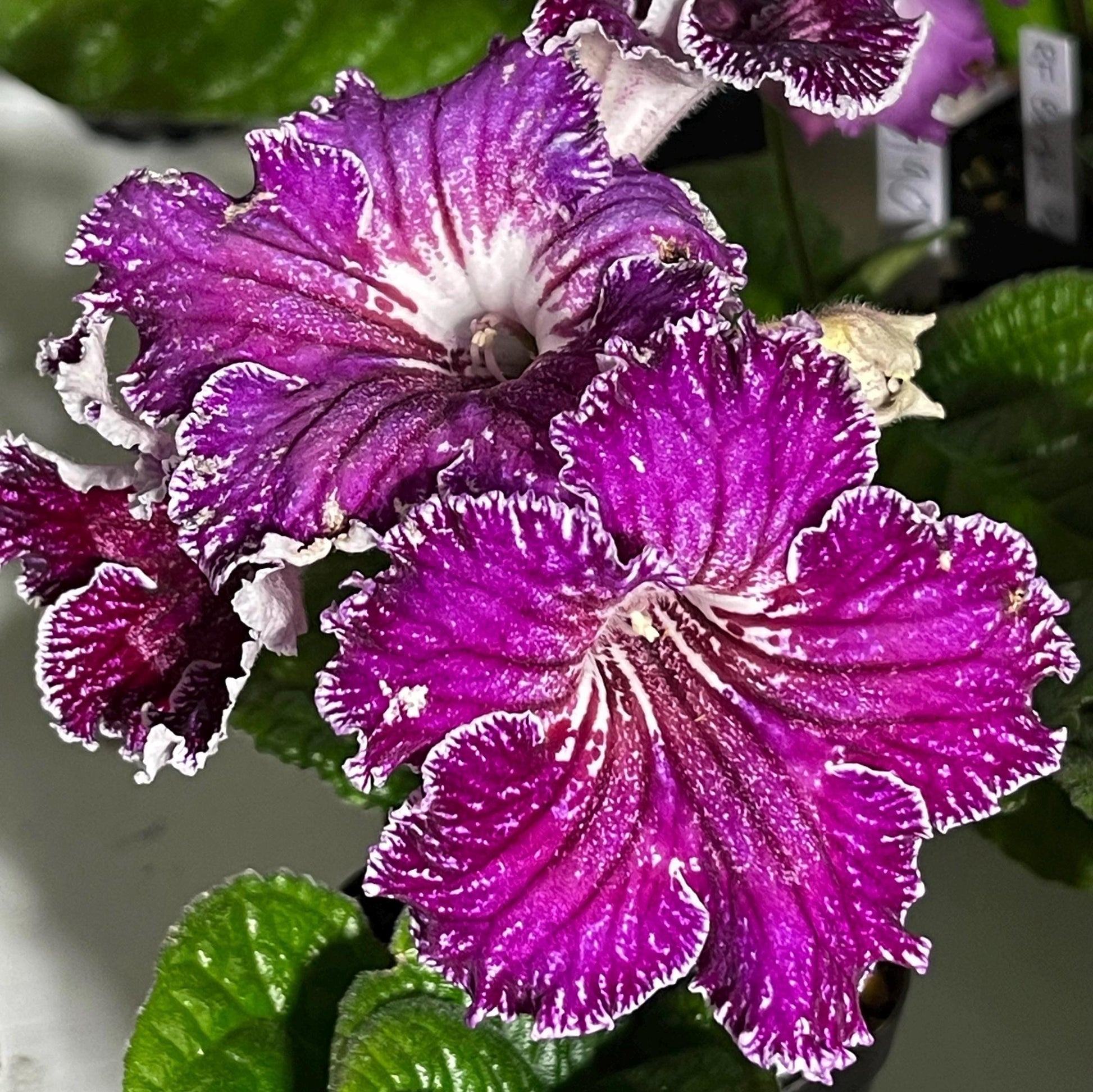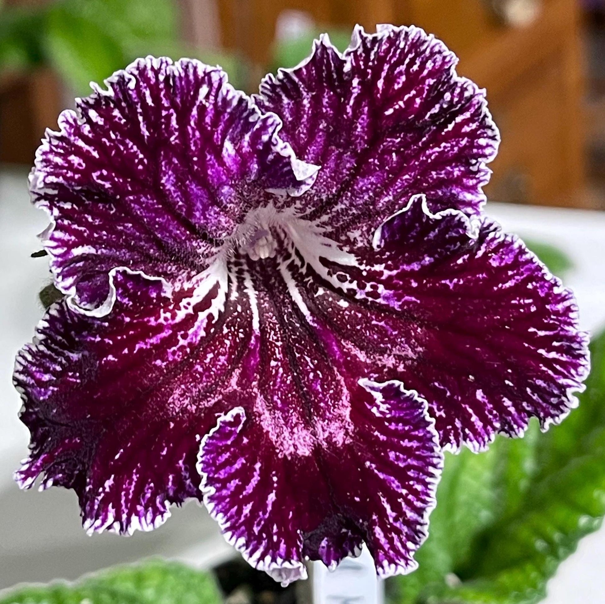 BB 1923 is a new introduction from Brandywine Botanica. Flowers emerge a dark magenta and expand into a bright fuchsia color. The lobes are edged in white fringe. A select hybrid out of UA Merry (Happy) Christmas.