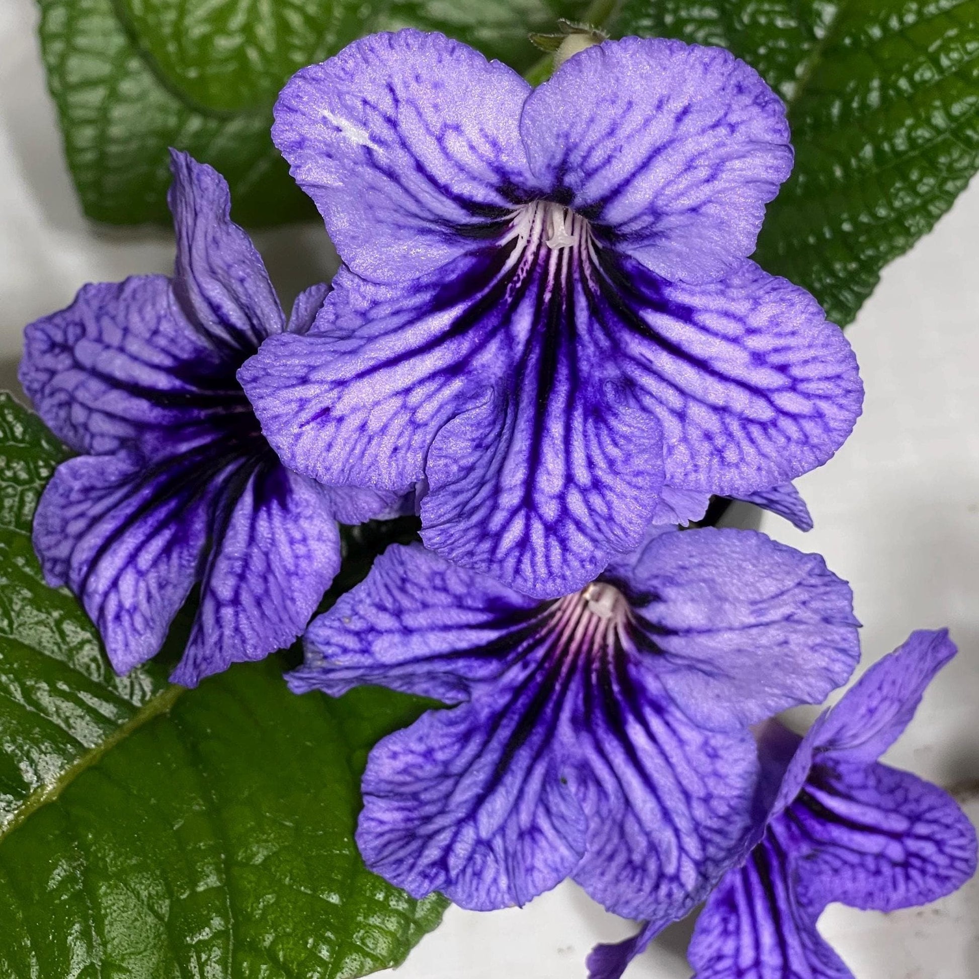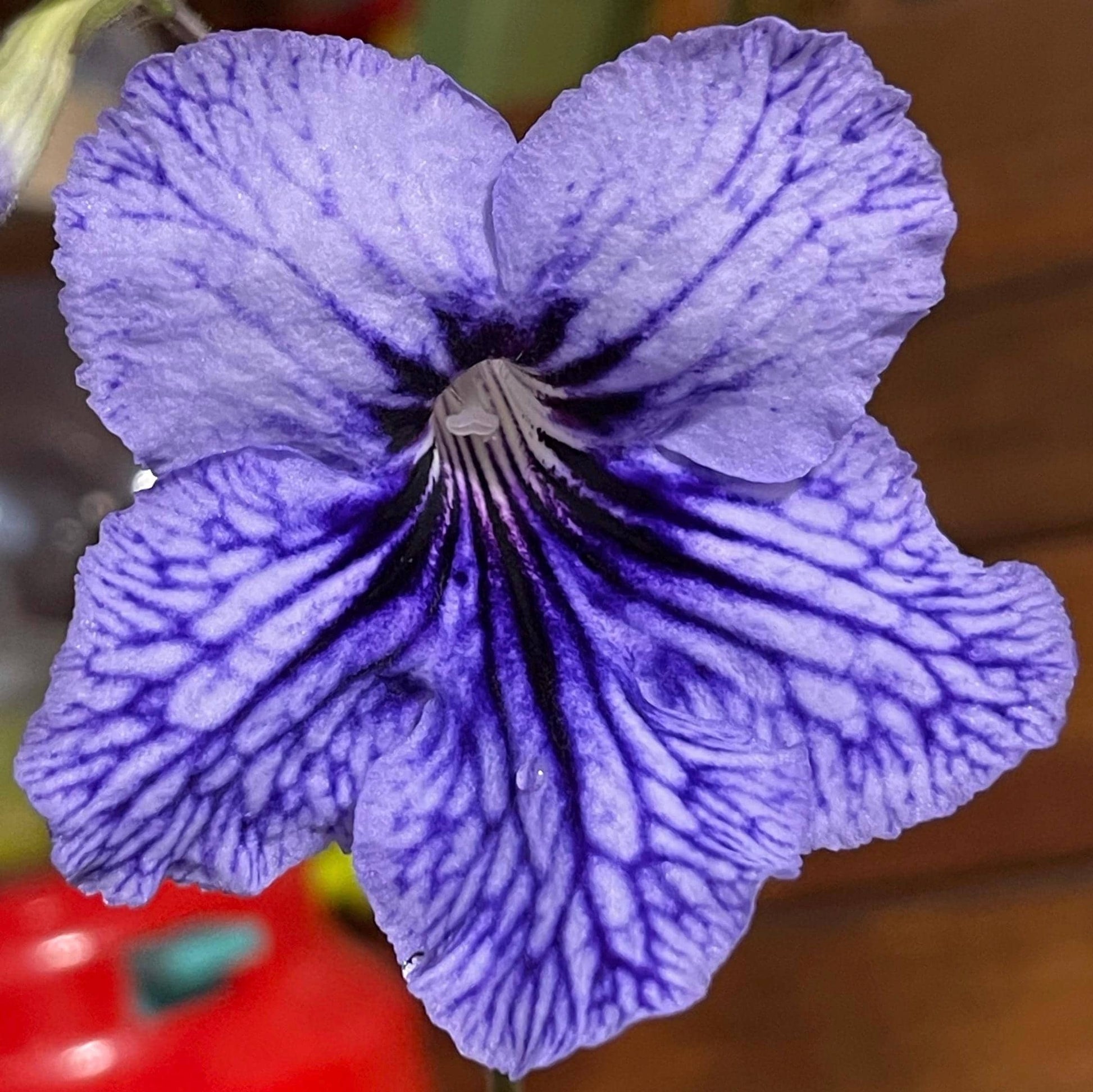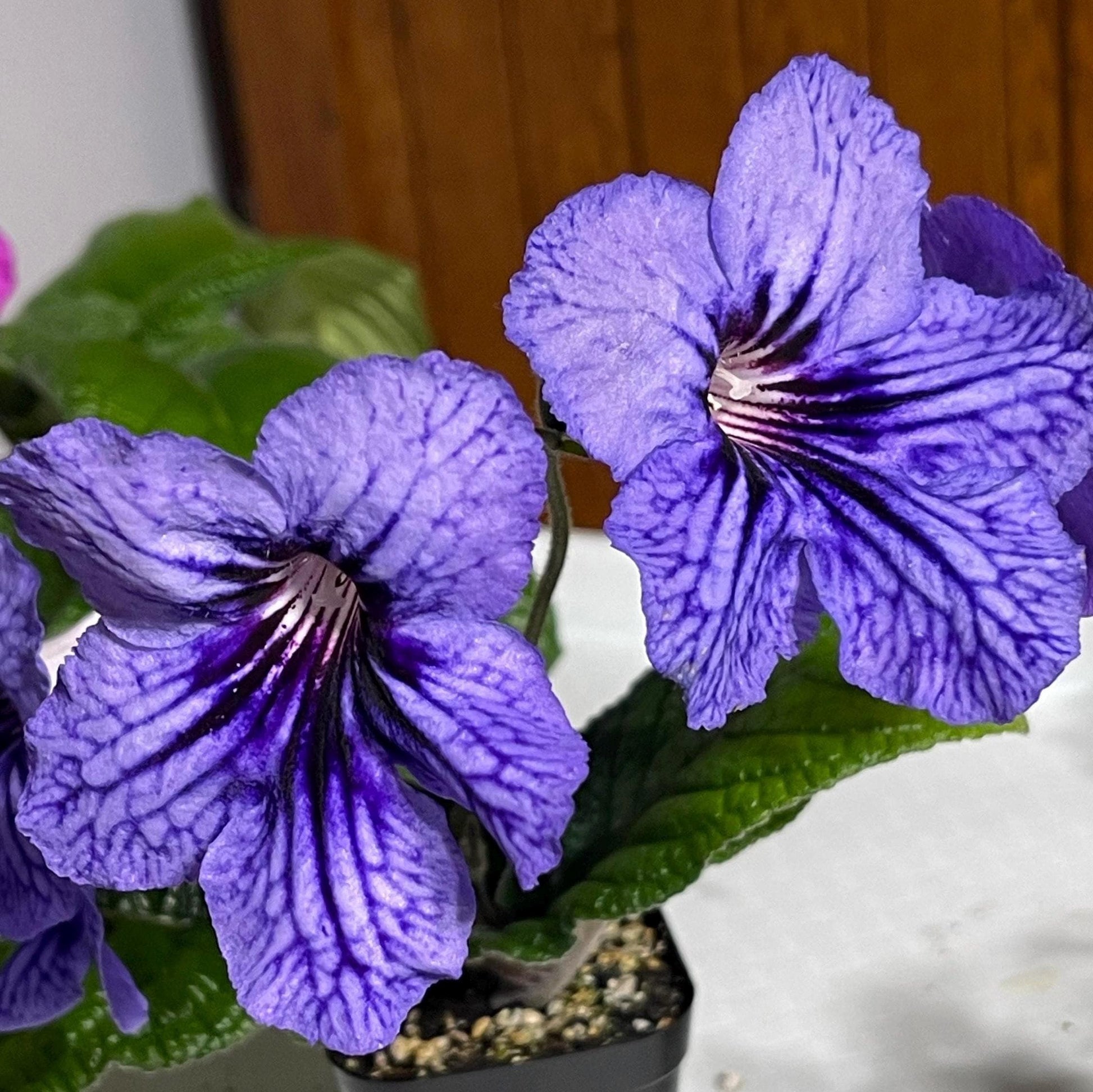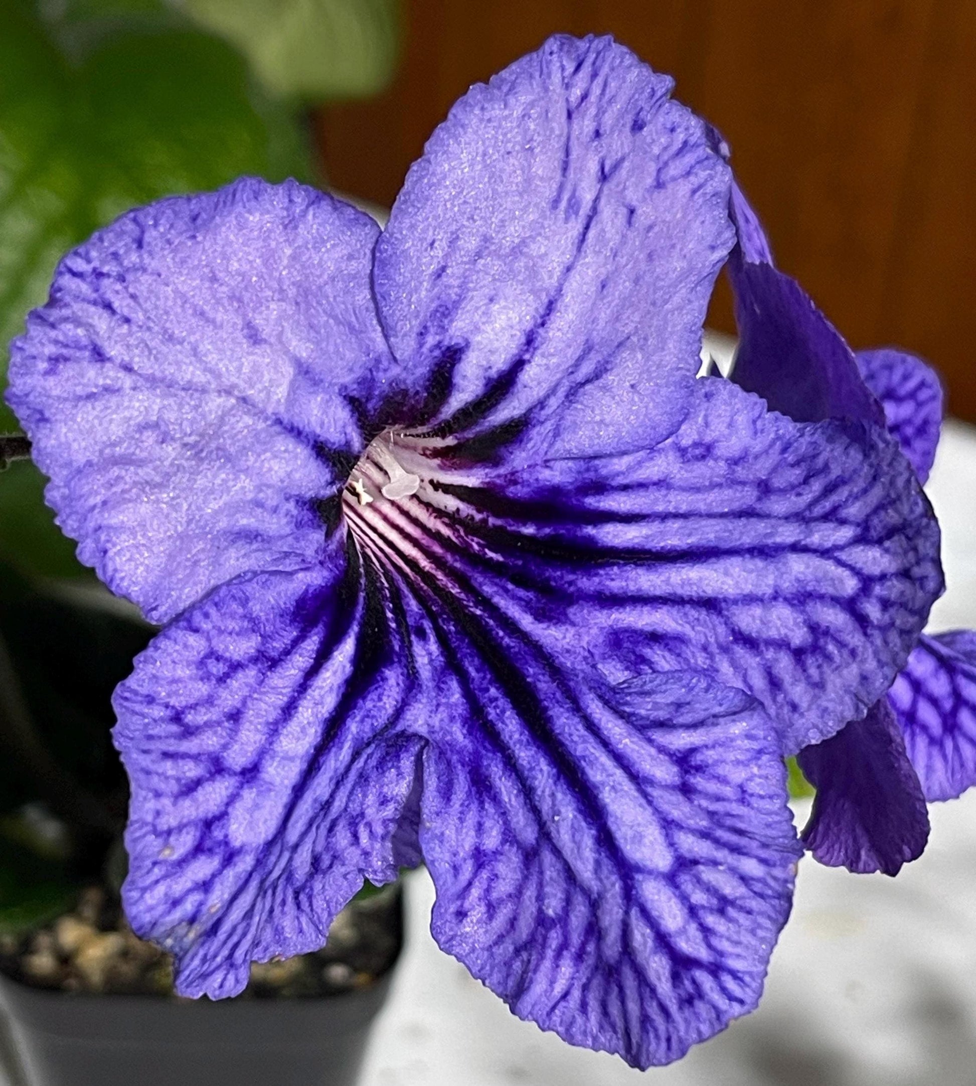 BB 3039 is a new introduction from Brandywine Botanica. Blue/purple flowers with dark purple veining and netting, particularly on the lower lobes. Small white eye.