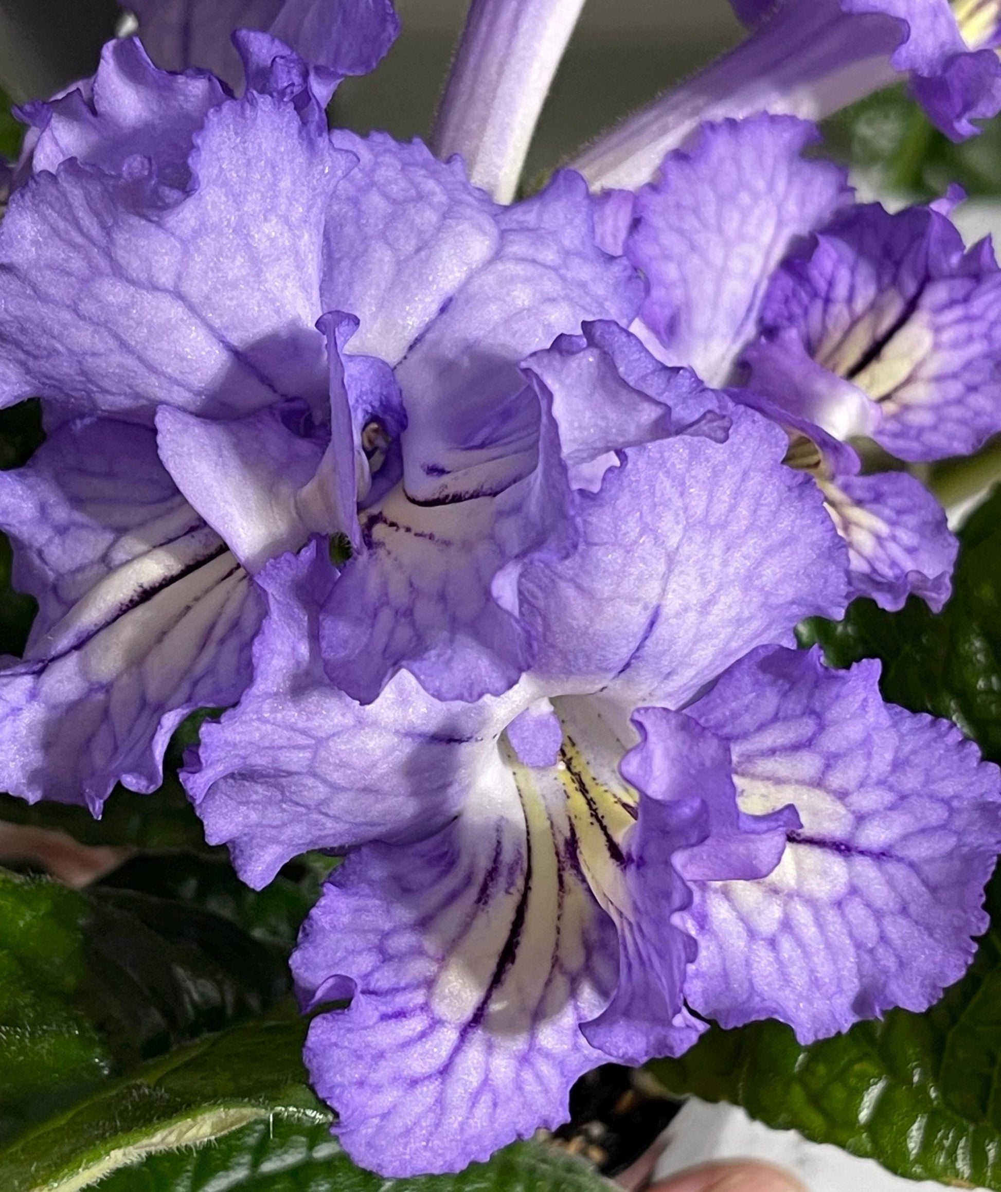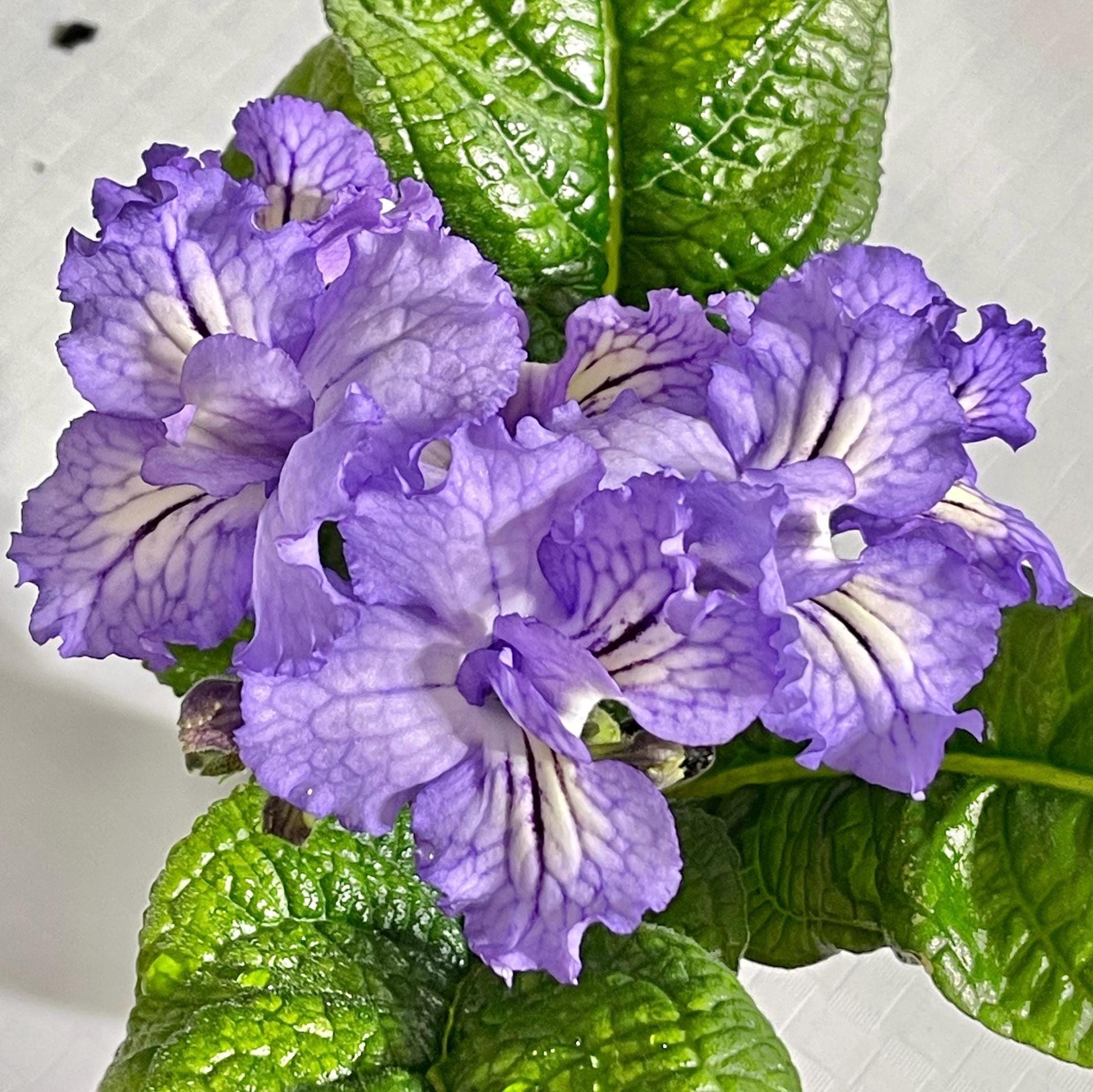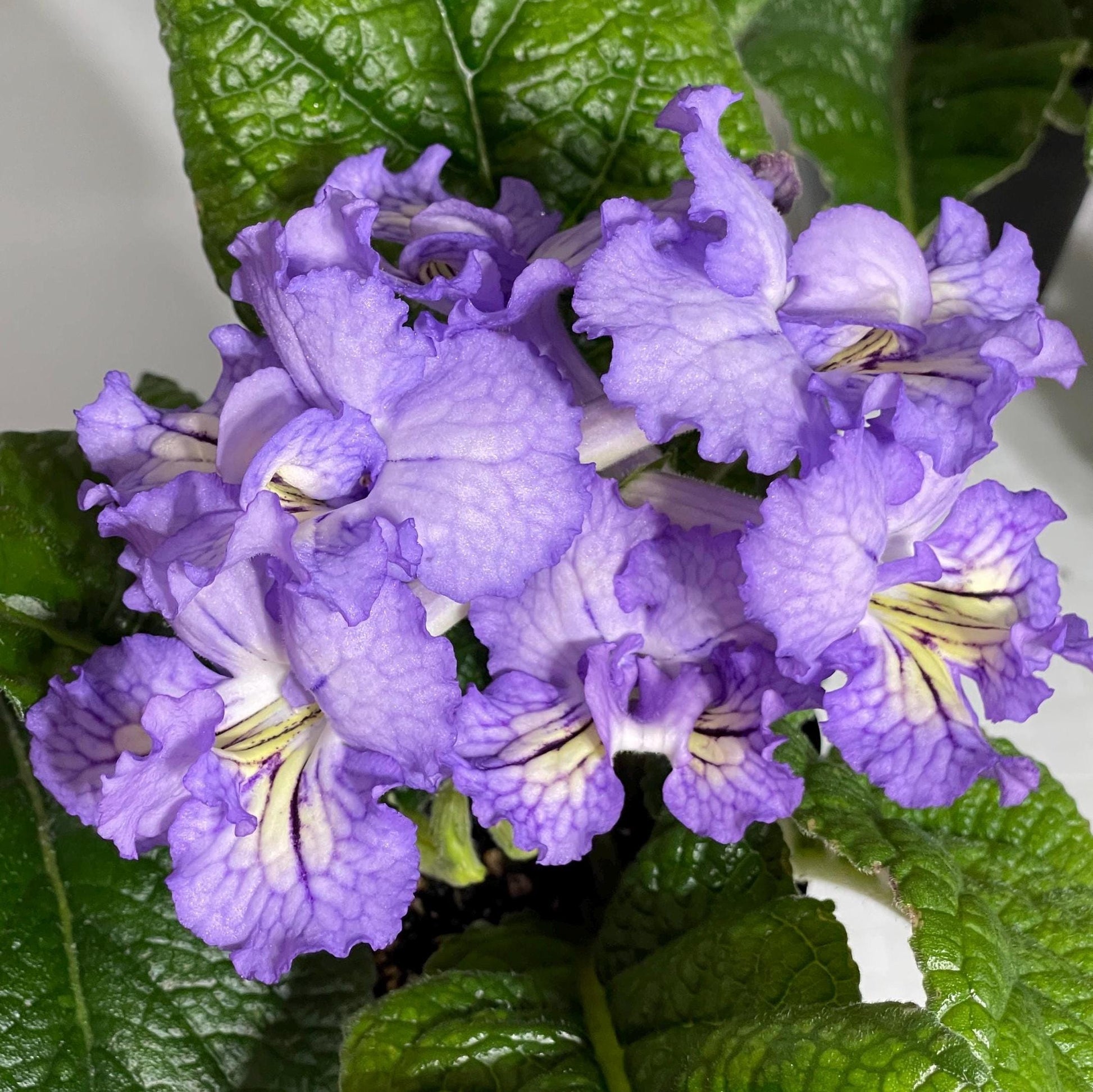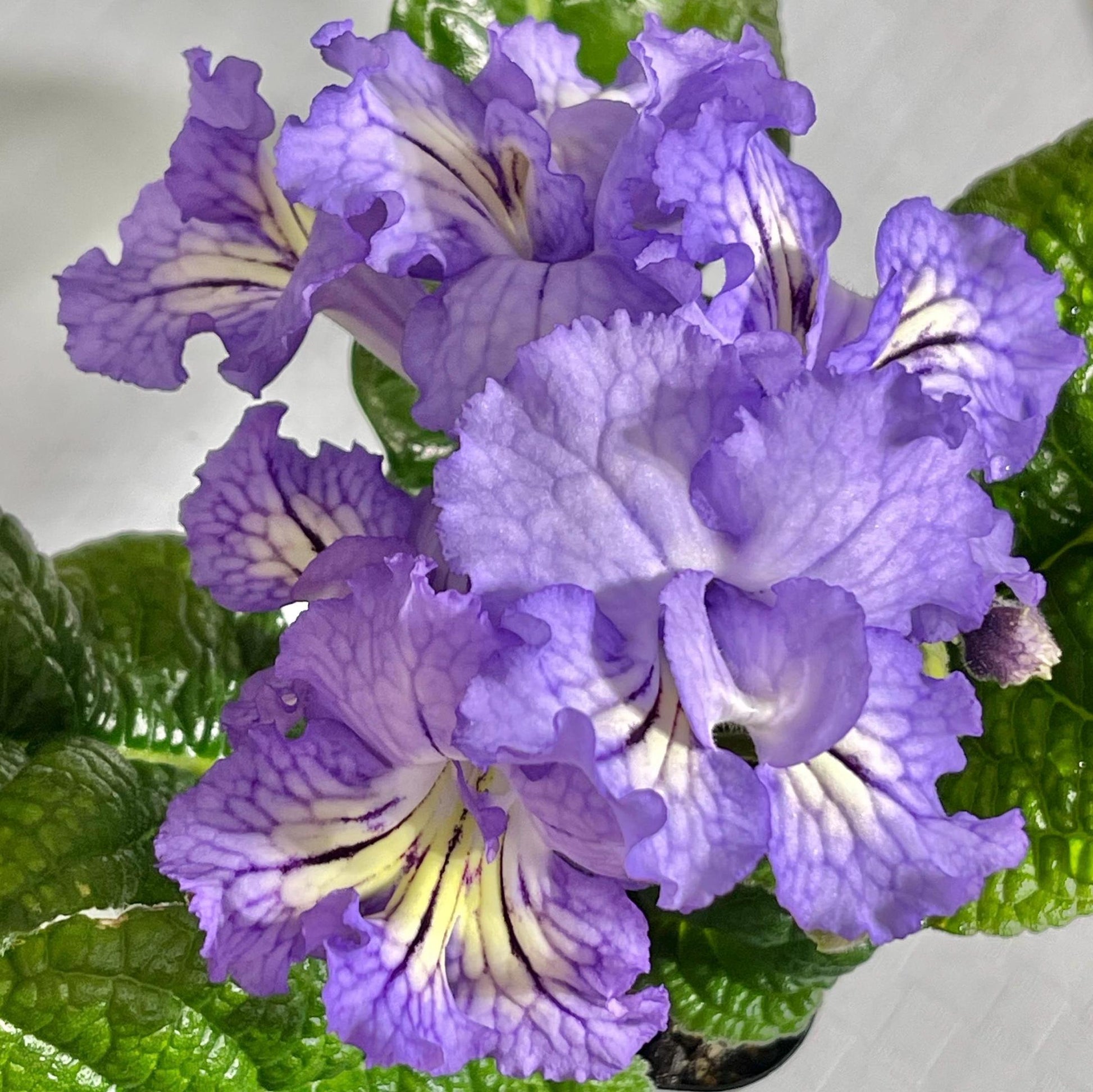 BB 3214 is a new introduction from Brandywine Botanica. Single to semi-double lavender blooms with light netting. White with yellow overlay on lower lobes. Flowers up to 2 inches wide.