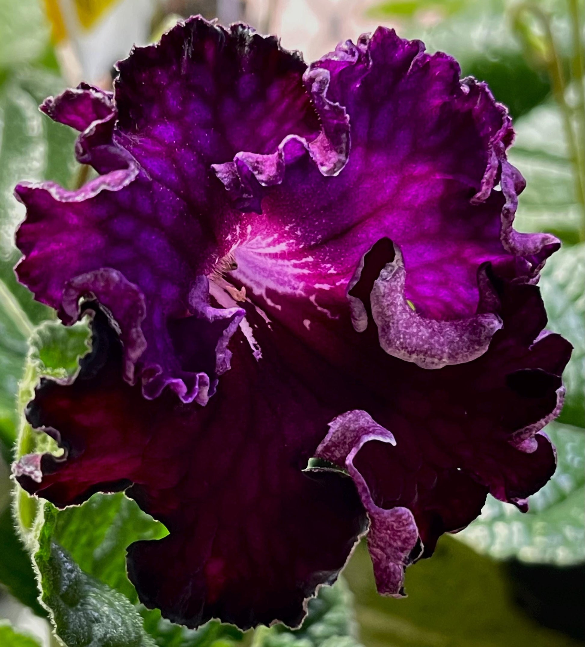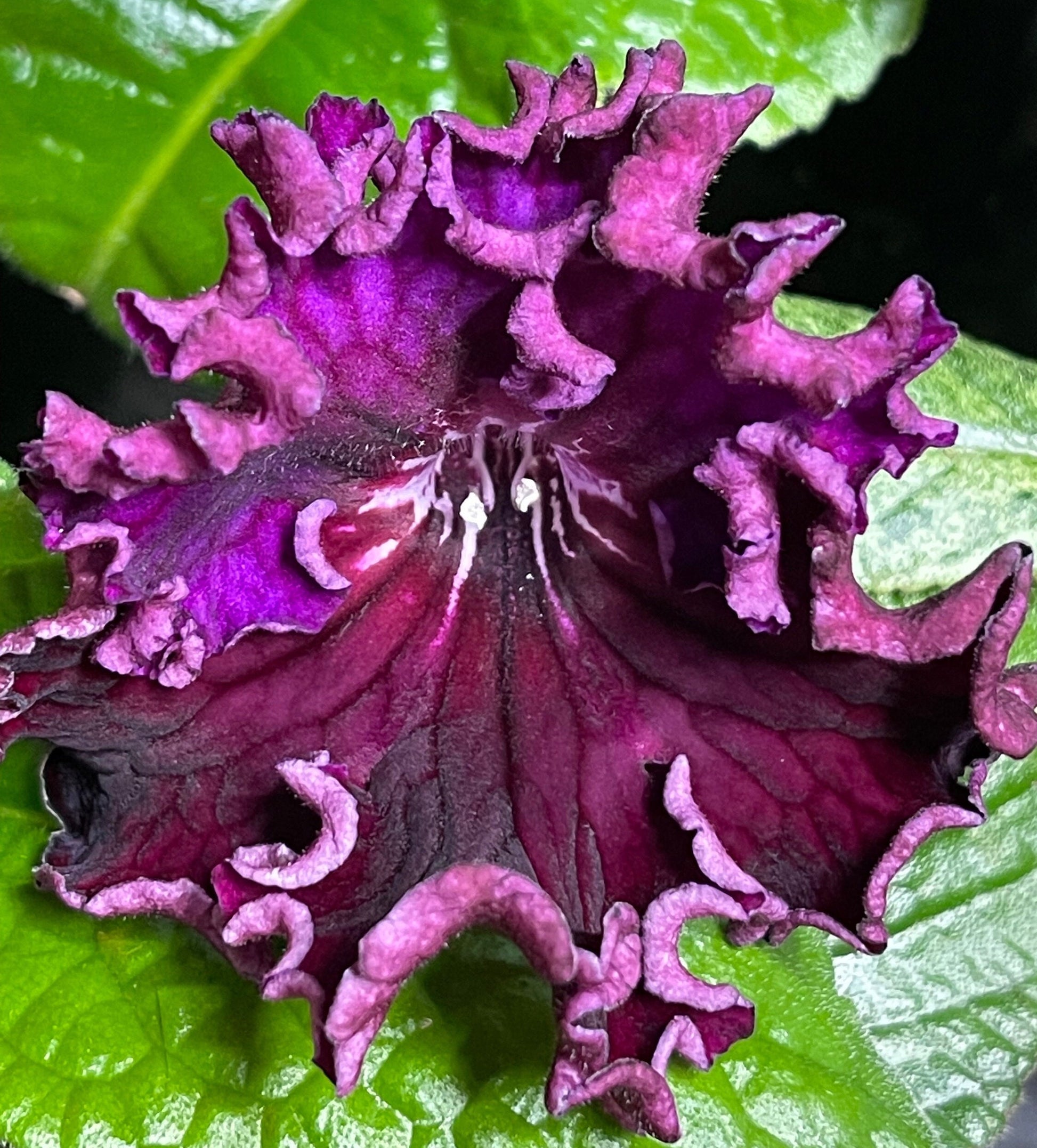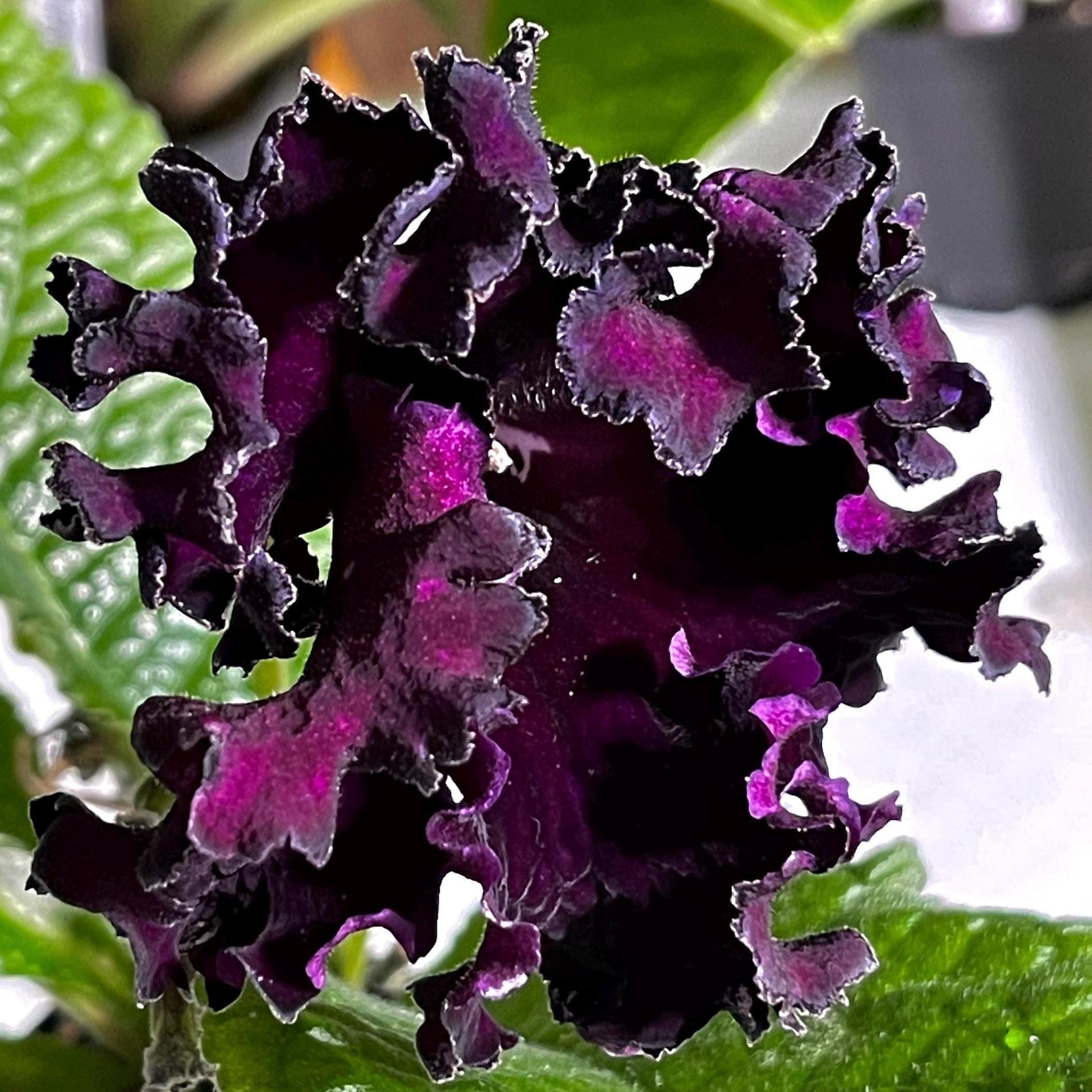 Dem Velour, bred by Dmitry Demchenko, Ukraine, has velvety fuchsia/burgundy flowers with large frilly edges. Gorgeous blooms!