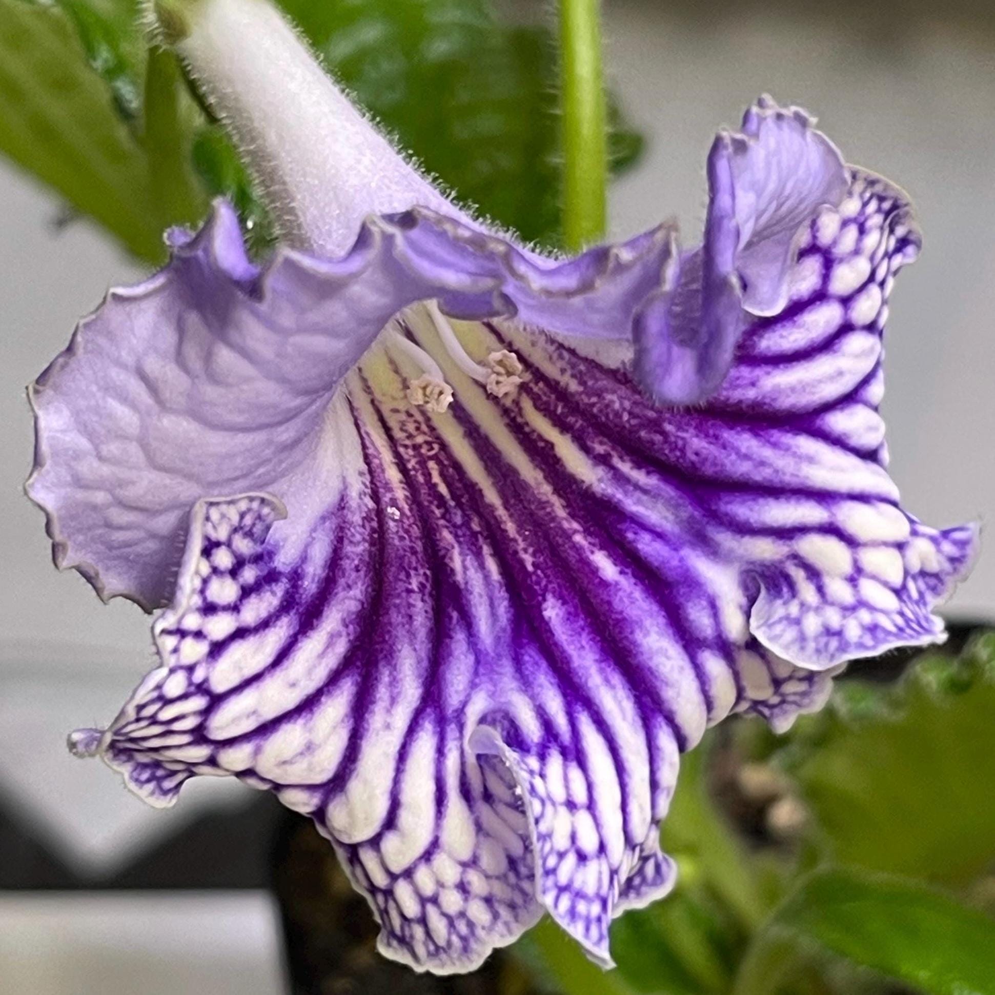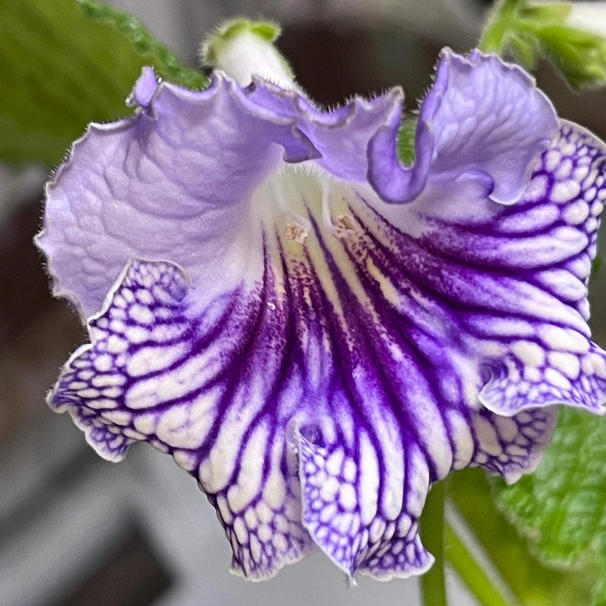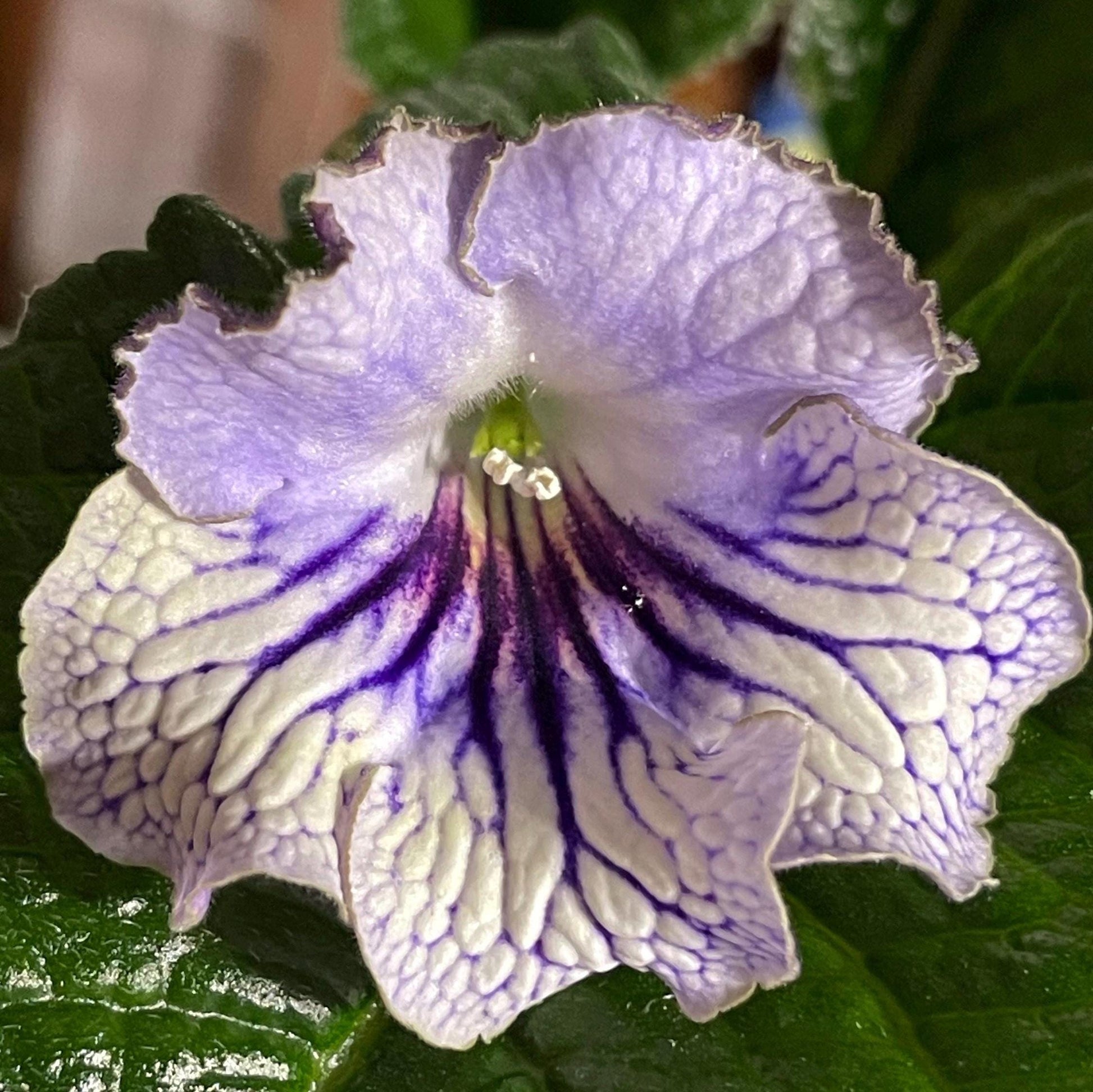 DS Crystal Lace - a hybrid streptocarpus from Demitris, Ukraine. This cultivar is a vigorous grower and heavy bloomer. However, it does not have the negative characteristics of many heavy bloomers. This cultivar is much easier to grow, as they require much less intervention from us to take care of the rosettes. This hybrid does it itself. We call it self-forming.