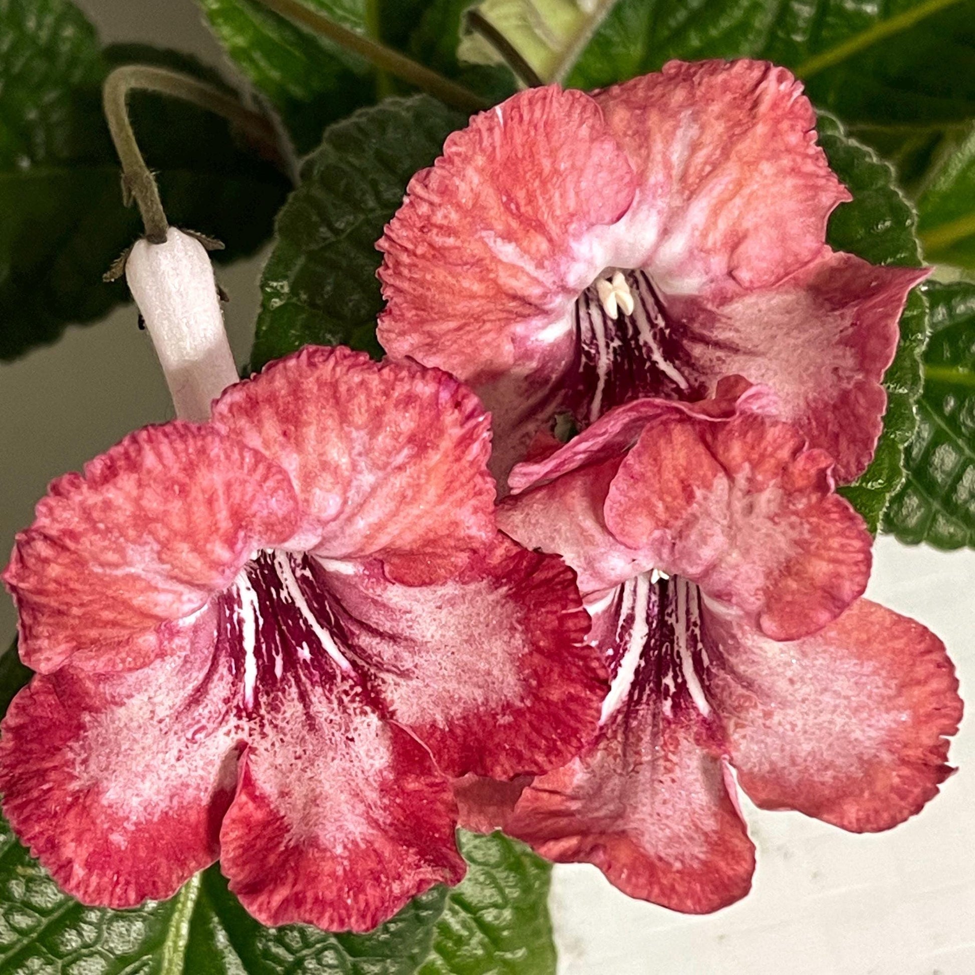 True Passion has an attractive mix of rose and salmon colored blooms with red and white streaks in the throat, and a salmon edge.