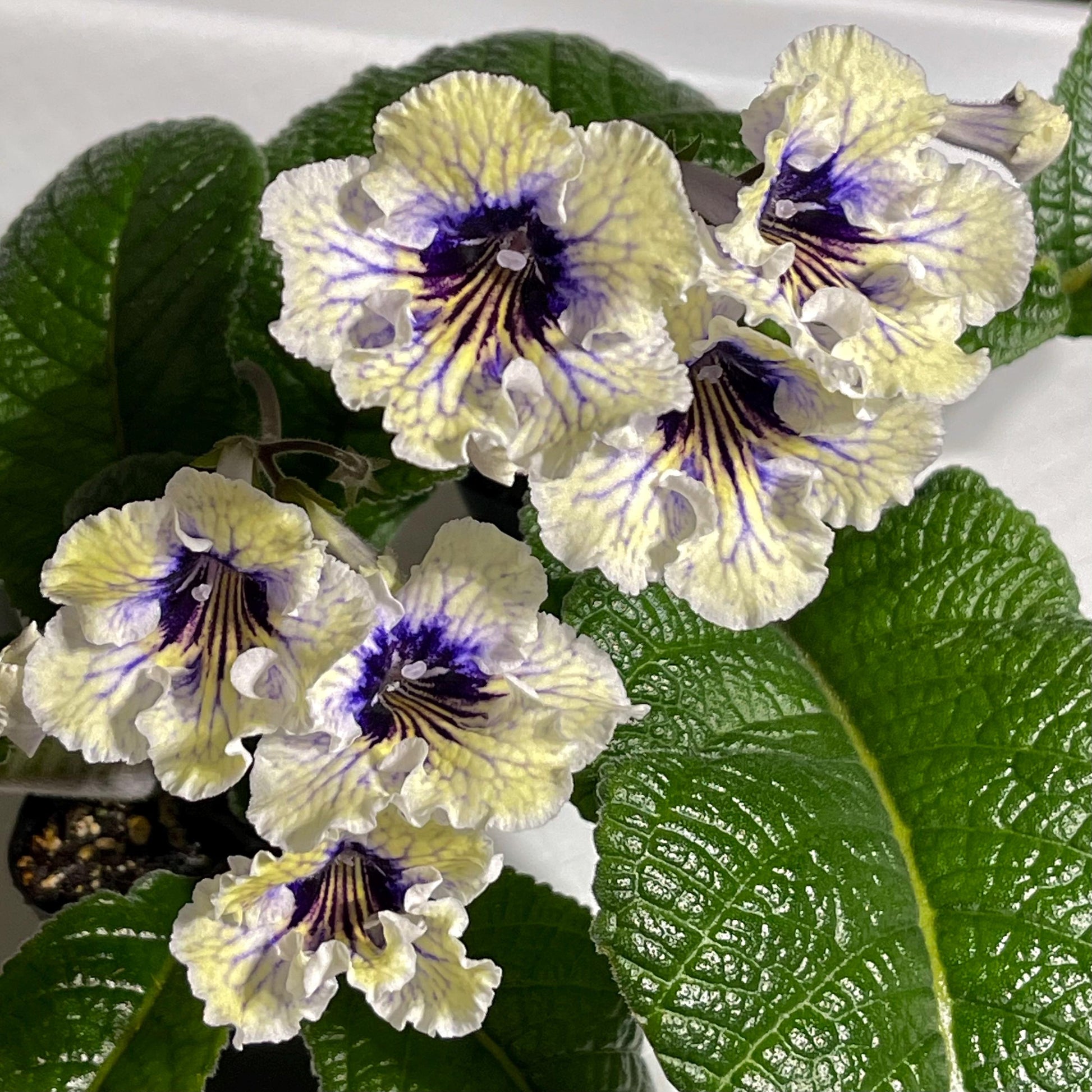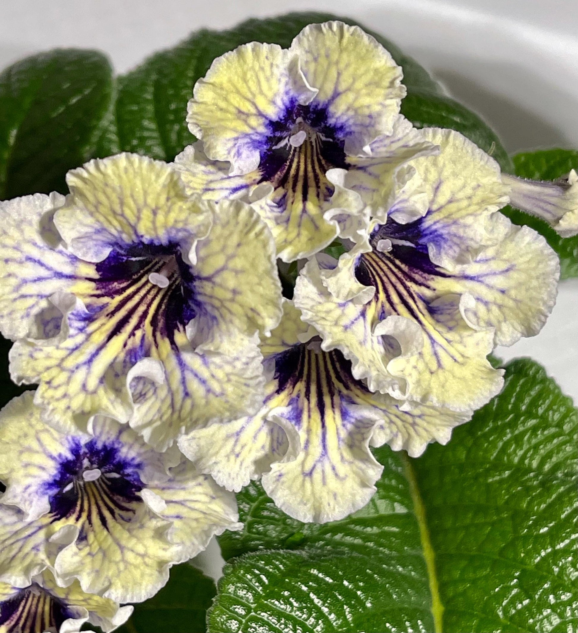Streptocarpus UA Solar Eclipse, common name Cape Primrose, is a live, rooted plant growing in a 2.5" wide by 2.5" deep pot. You will receive a plant similar to the starter plants shown in the photos. Flower buds may or may not be present on your young plant. A photo is included showing a closeup of the flowers of this variety when properly grown.